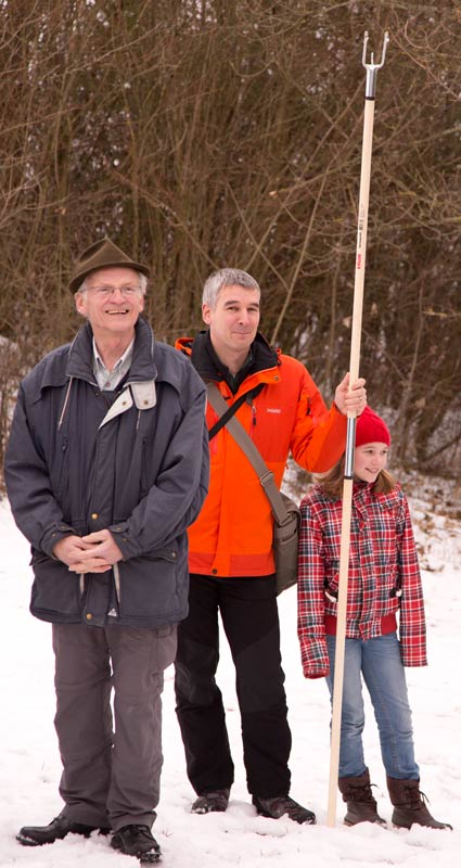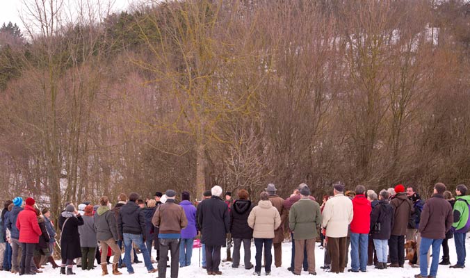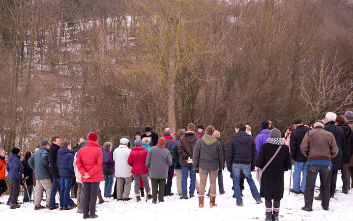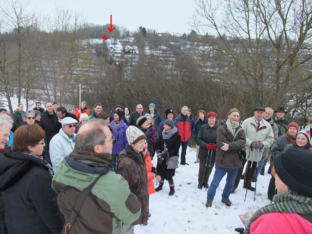 Vorbegehung am Samstag 12.1.2012 mit Günter Krämer im Räuschelbachtal. Bei Schneetreiben bereiten wir die Gedenkfeier am Helmut-Theurer-Baum vor