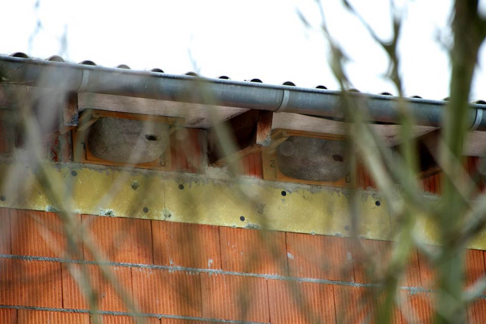 Wir betrachten Nistkästen für Mauersegler beim Steinmetz Stein. Vom NABU vor 2