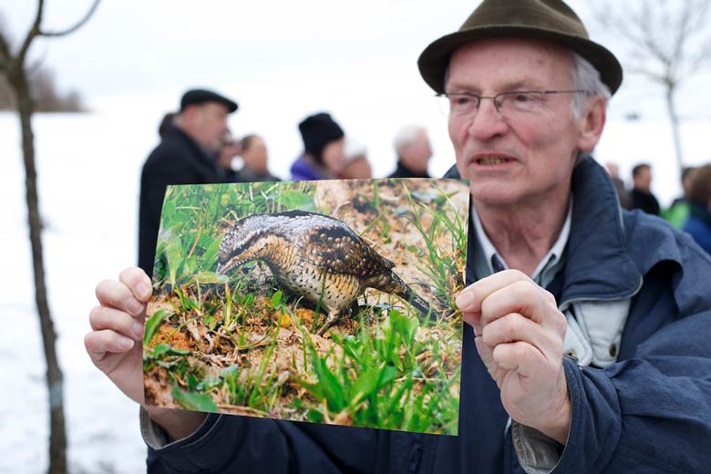 Wolfram Bock zeigt ein Foto unserer seltensten Spechtart. Wie er Ameisen mit