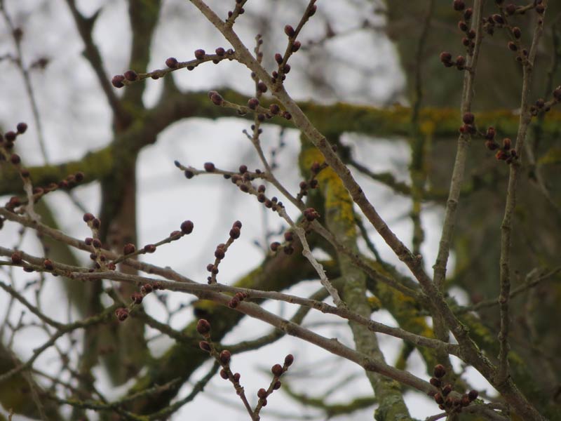 Der Helmut-Theurer Baum wird sorgfältig bestimmt als Feldulme. Hier seine Knospen