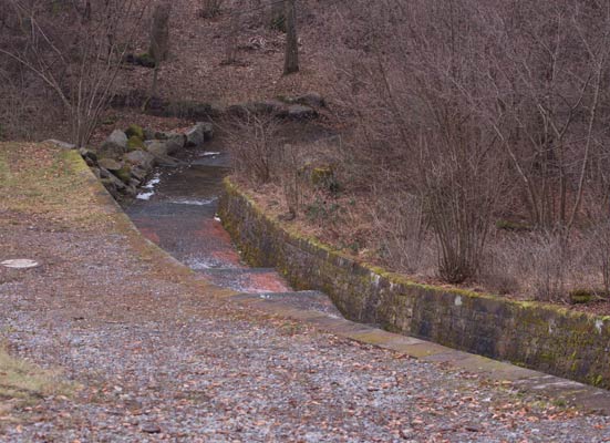 Aus dem Neuen See floss heute Wasser über diesen Überlauf in die Glems