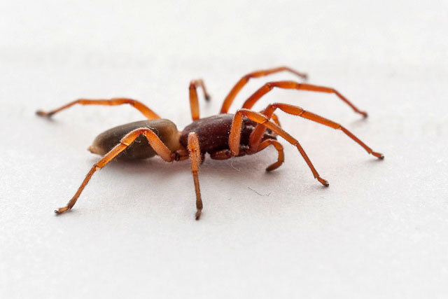 der große Asseljäger (Dysdera crocata) ist nachtaktiv und versteckt sich tagsüber in einem festen Gespinstsack ... mehr über unsere