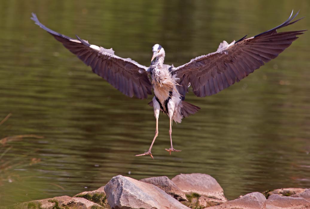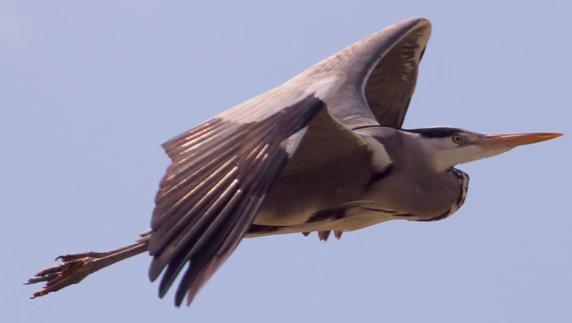 der fliegende Graureiher ist