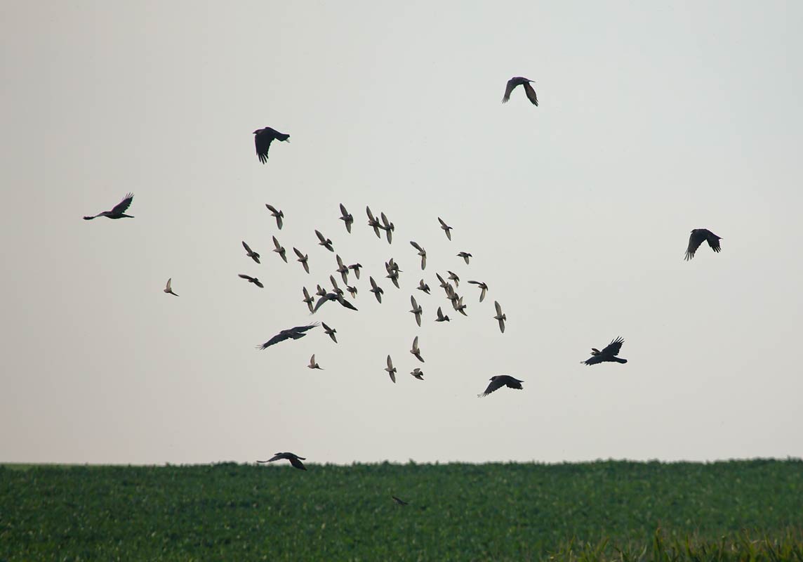 Stare und Saatkrähen |