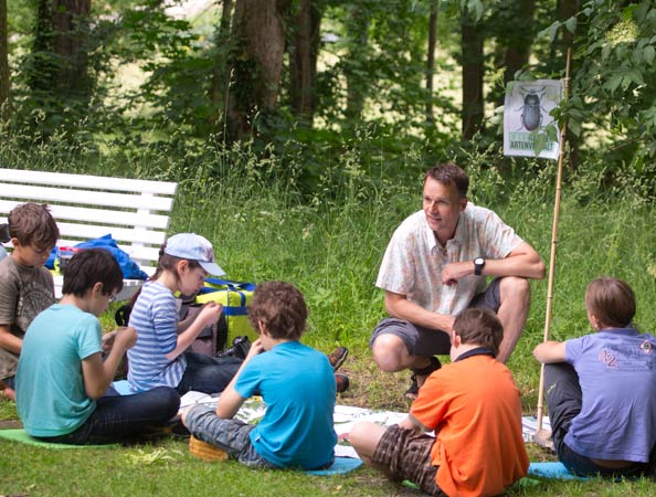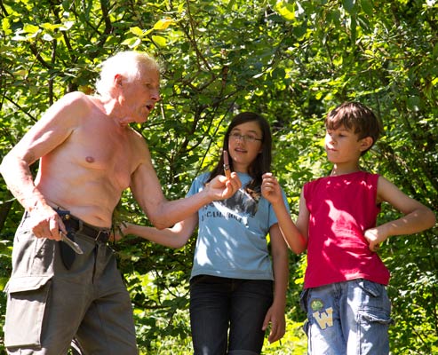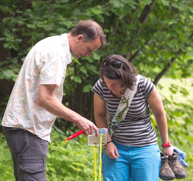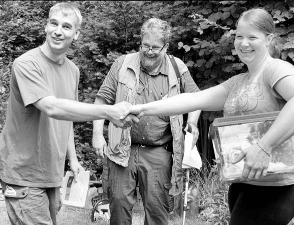 Ralf Trinkmann als Leiter der Biotopaktion bedankt sich bei Melanie, der Pflegerin des Siebenschläfers |