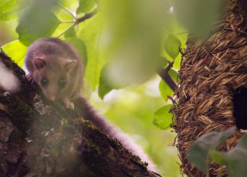 | der Siebenschläfer wird freigelassen zum auswildern, wirkt aber verängstigt |