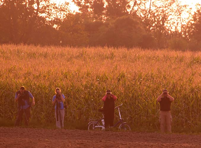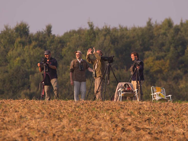 | Vogelbeobachter am Kaiserstein in Münchingen | auf dem Acker ist ein Sandregenpfeifer | der Sandregenpfeifer ... mehr über Sichtungen von → Regenpfeifern im Glemstal |