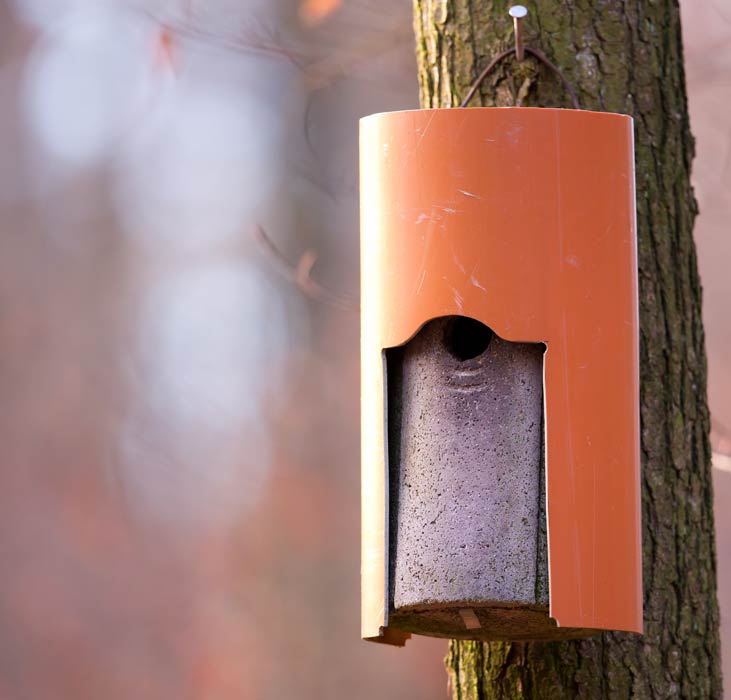 einige Nistkästen im Zeilwald mit einem Marderschutz versehen