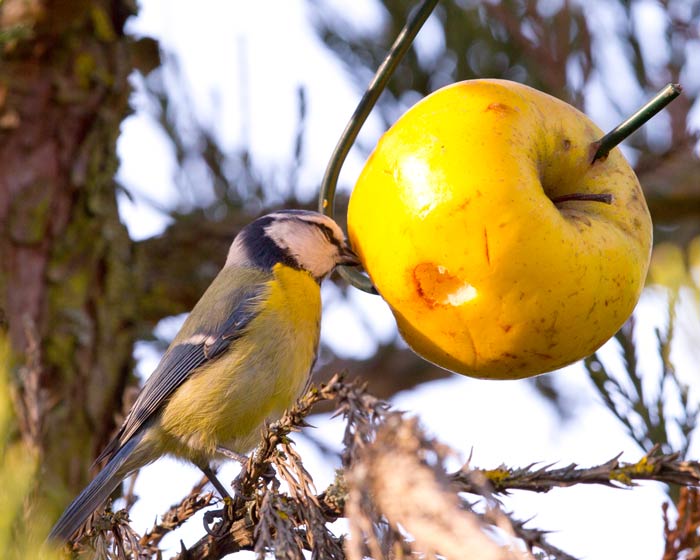 am Weihnachtsbaum für Vögel waren die halben Nüsse an dem Adventskranz ... mehr über die → Blaumeise in Hemmingen |