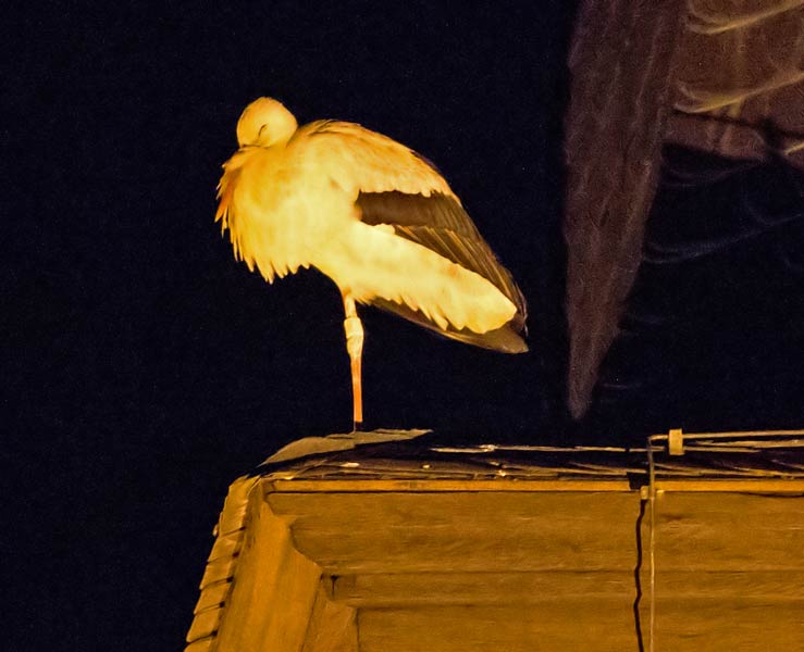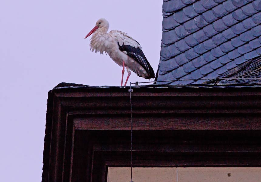 klappern gehört. Der Storch saß bis zum nächsten Morgen dort"