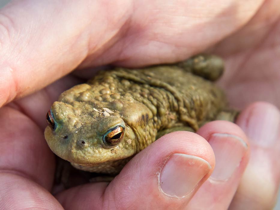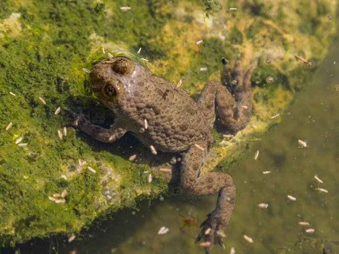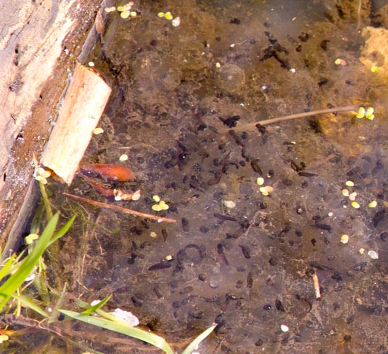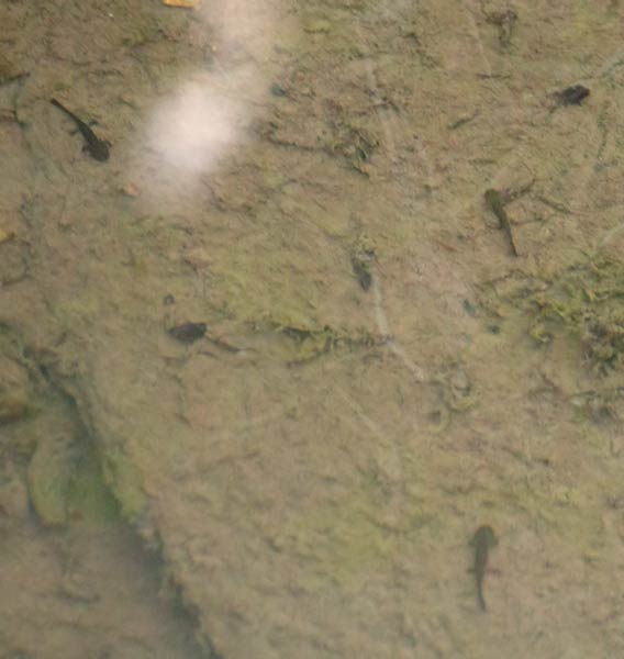 anhalten. Mindestens 10 Bergmolche sind im Bergmolchteich auf dem