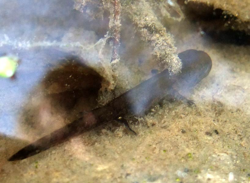 eine Feuersalamanderlarve im Bergmolchteich auf dem NABU Stückle im