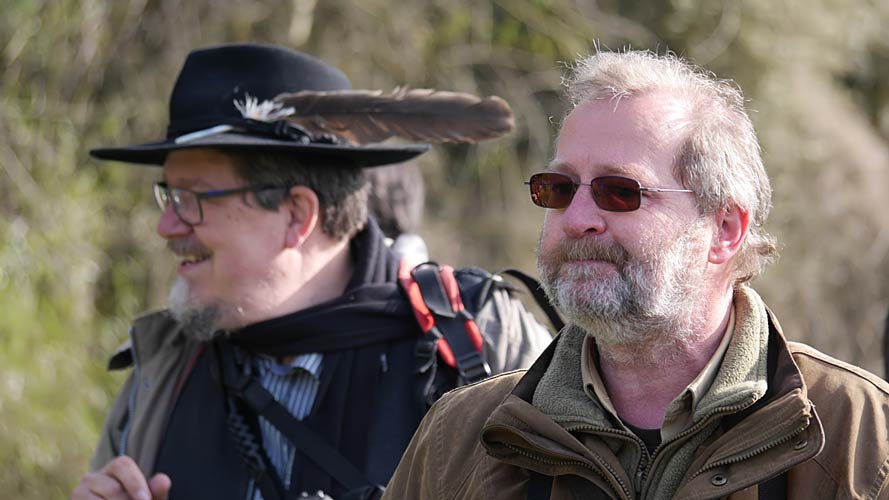 überraschende Begegnung abends auf dem NABU-Stücke im Räuschelbachtal: Unsere NABU-Aktive Monika schaut kurz vorbei