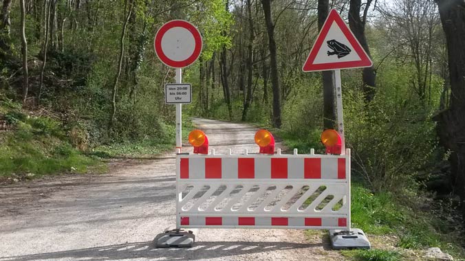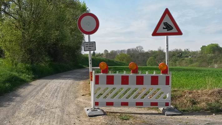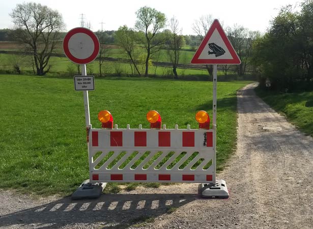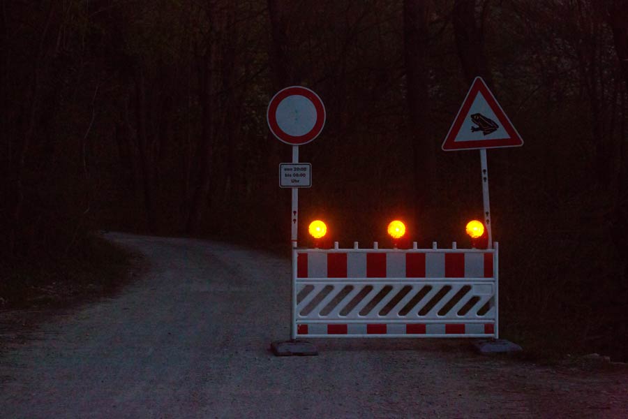 Die Sperrschilder sind nachts beleuchtet ... mehr über → Amphibien im Glemstal |