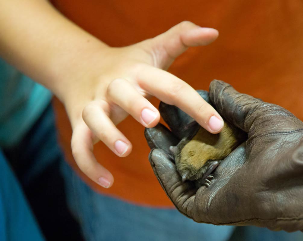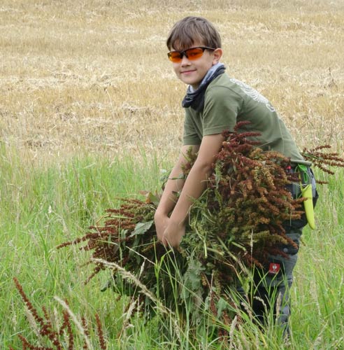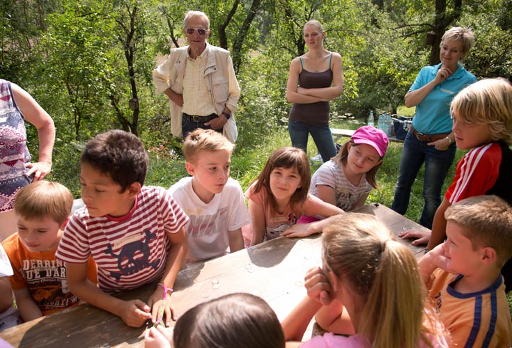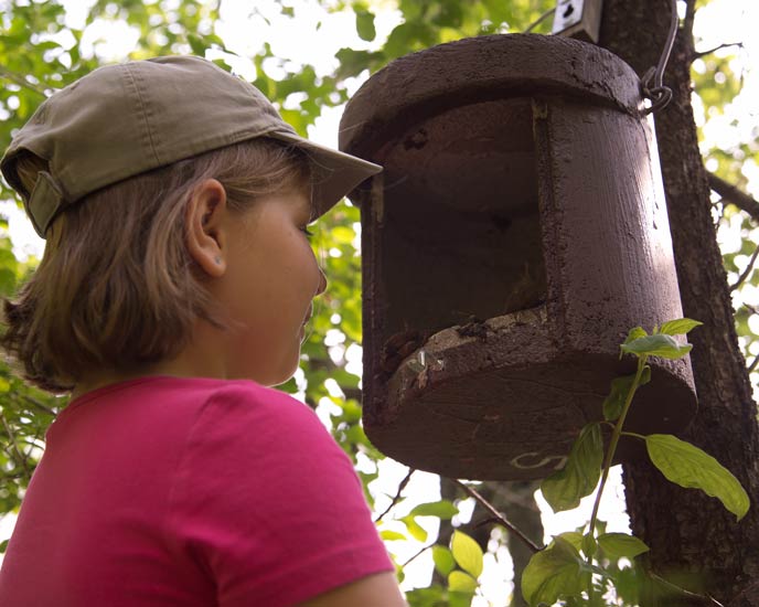 Emely schaut nach dem Siebenschläfer auf dem NABU Stückle