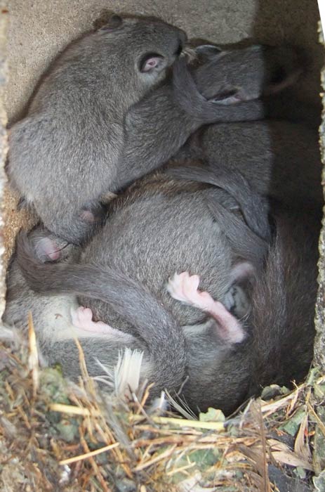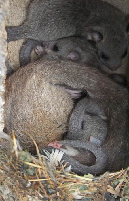 Unsere NABU-Siebenschläfer-Familie auf dem NABU-Stückle Markt schläft tagsüber. Kuscheln sich gerne aneinander