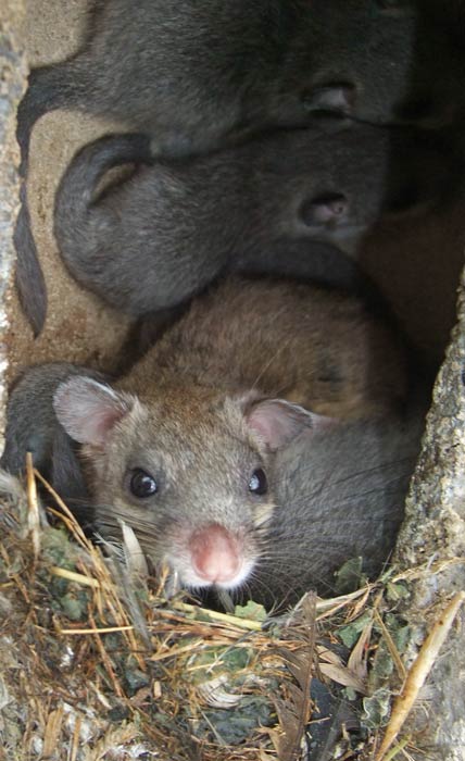 Unsere NABU-Siebenschläfer-Familie auf dem NABU-Stückle Markt: vorne die Mama in braun