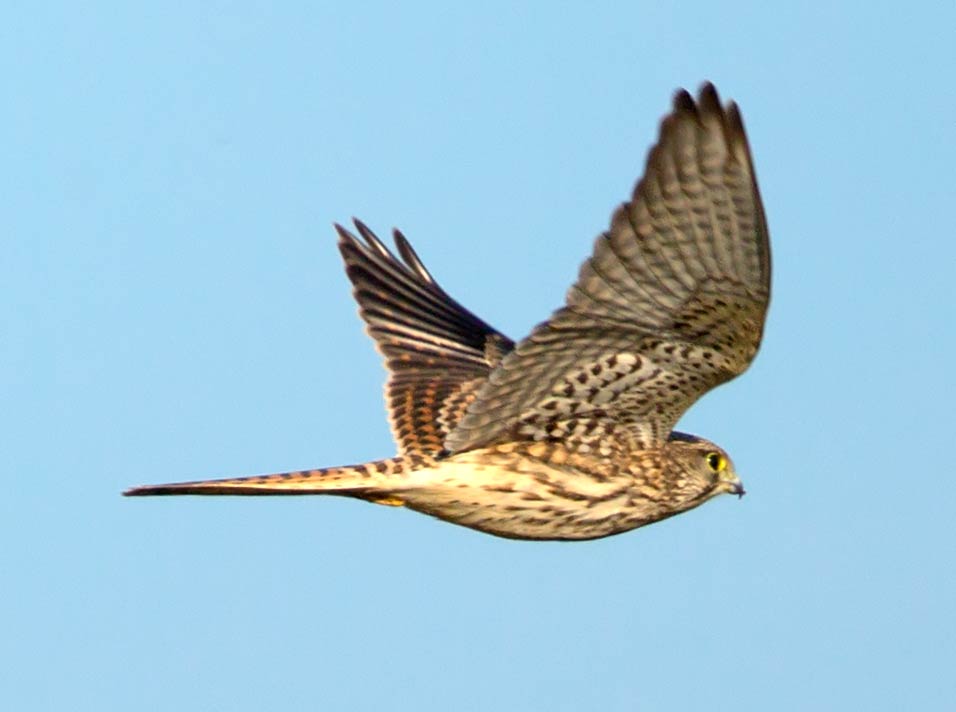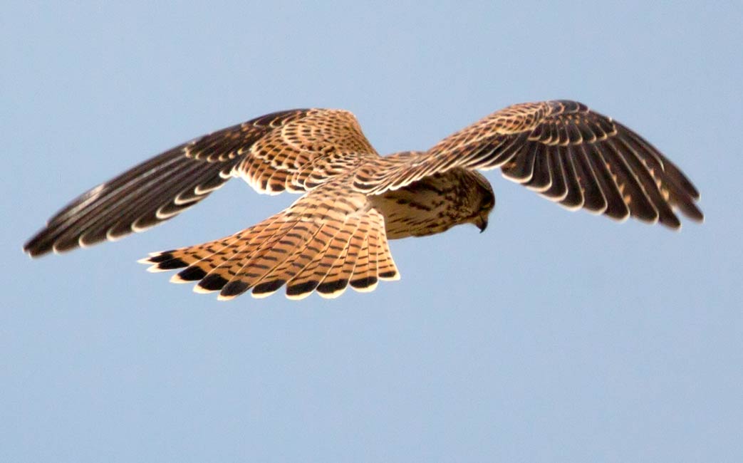 Oben: Der Wespenbussard im Größenvergleich mit einem Turmfalken (unten)