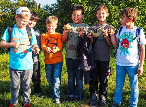 mich ein junger Teilnehmer auf dem Hinweg zur NABU Streuobstwiese.