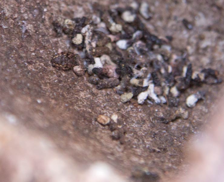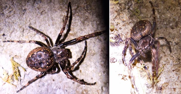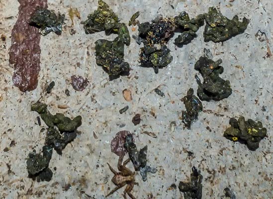 Suchbild! Fledermauskot und eine Krabbenspinne der