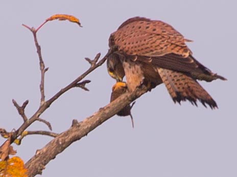 Der Turmfalke hat eine Maus gefangen und verspeist diese ... mehr über den → Turmfalken im Glemstal → Mausarten im Glemstal |