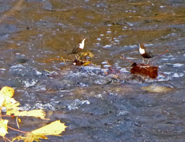 die beiden Wasseramseln in der Glems. Zankend? Balzend? Revierkämpfe? ... mehr über die → Wasseramsel im Glemstal |