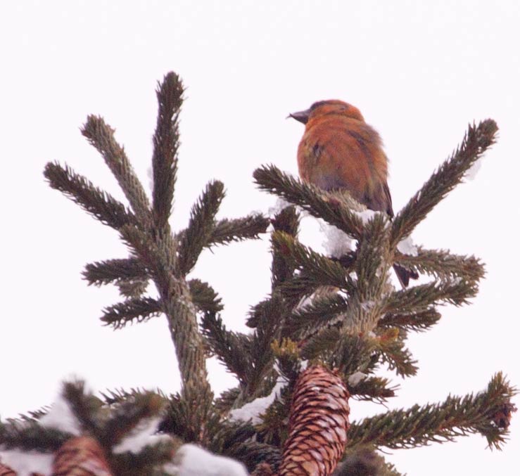 Ein Fichtenkreuzschnabel (Loxia curvirostra) Am Bahnhof der Höllentalbahn in St. Blasien