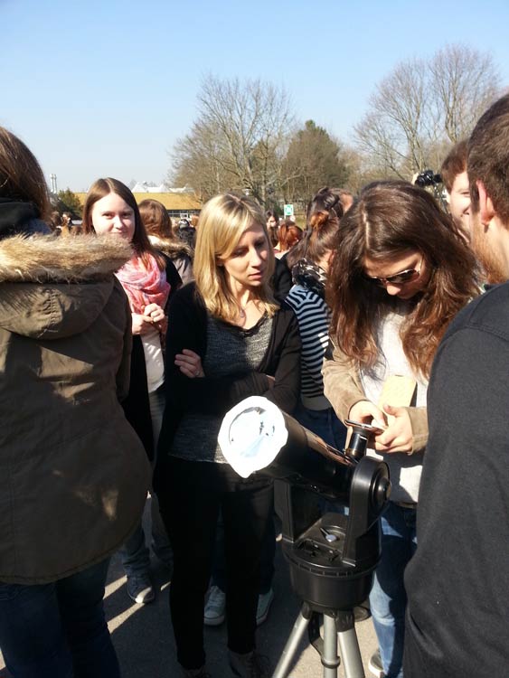 Hildegard Gölzer zeigt Fotos der Sonnenfinsternis die sie am Tag der JHV morgens aufgenommen hatte
