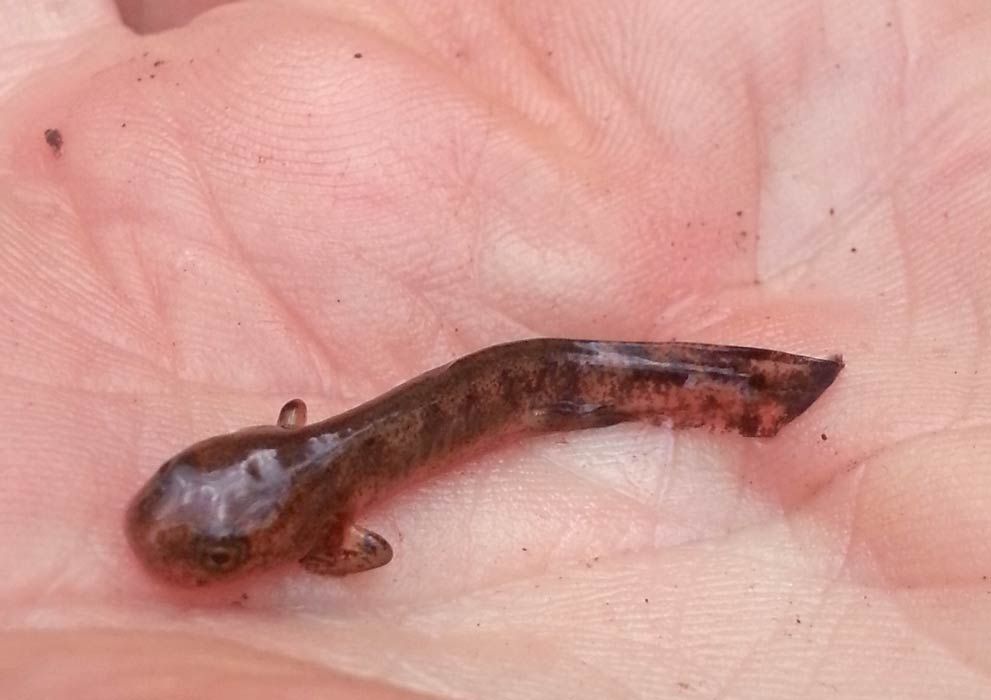 Ein Feuersalamanderbaby aus dem hinteren Unkenbiotop Hinweis: Kiemenatmer! Kann nur im Wasser atmen! ... mehr über → Feuersalamander im Glemstal |
