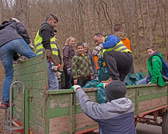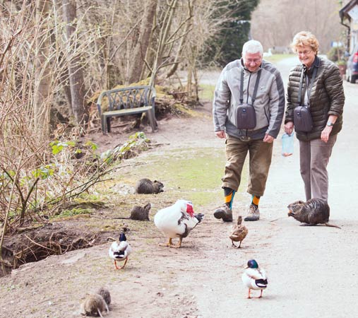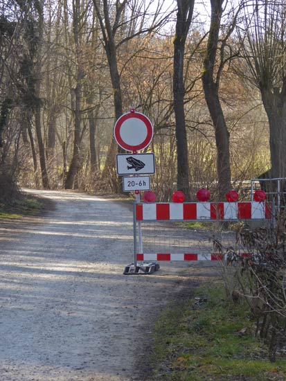 Die schlammigen Fahrspuren sind voll mit ca. 200 Grasfröschen und mit