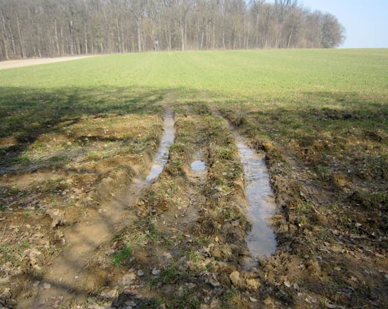 Schlammgefüllte Fahrspuren im Eulenbergwald |