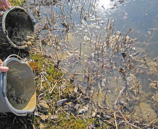 verschlammte Grasfrösche am Böhnlachteich → Böhnlachteich in Hemmingen |