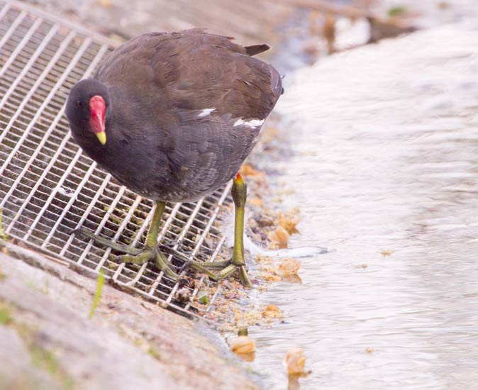 das im Glemstal sehr heimlich und versteckt lebende grünfüßige Teichhuhn. (Ganz