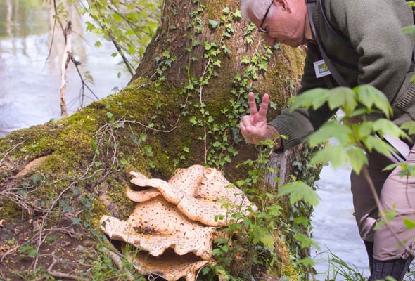 ein bemerkenswert großer Pilz mit Fritz Plachetta. Mein Tip: Schuppiger Stielporling (Polyporus squamosus) ... mehr über → Pilze im Glemstal |