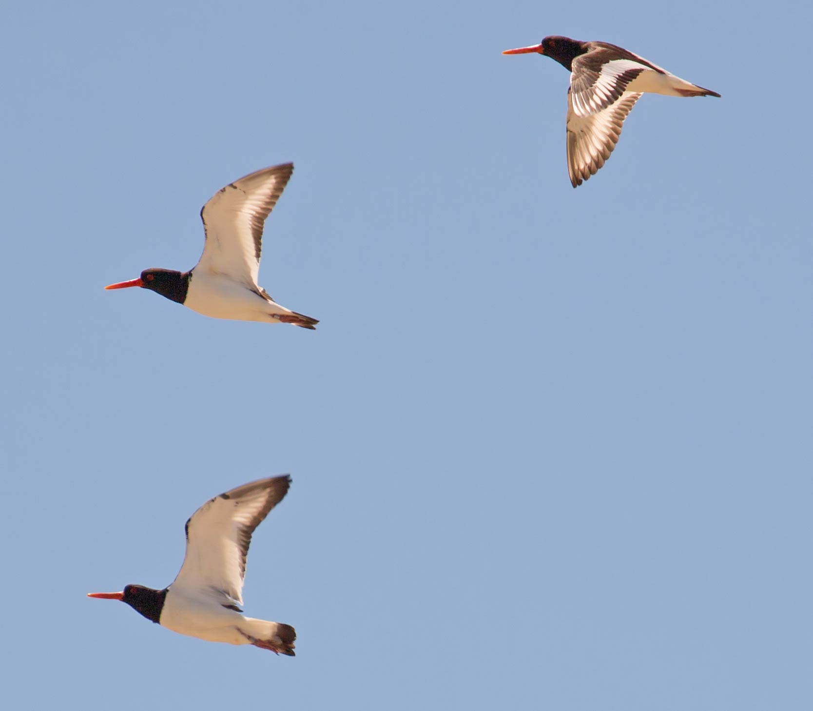 Drei Austernfischer Haematopus ostralegus im Flug |