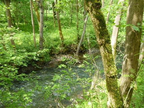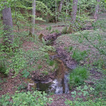 die junge Glems kurz vor dem Pfaffensee ... mehr über den → Glemswald an der Glemsquelle |