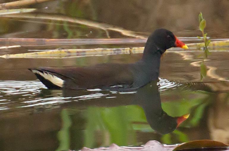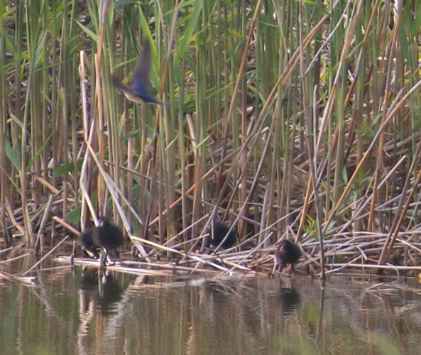 Bei einer Nachbegehung abends entdeckt: Teichhuhn im Schilf am Feuchtbiotop "am Seewäldle |