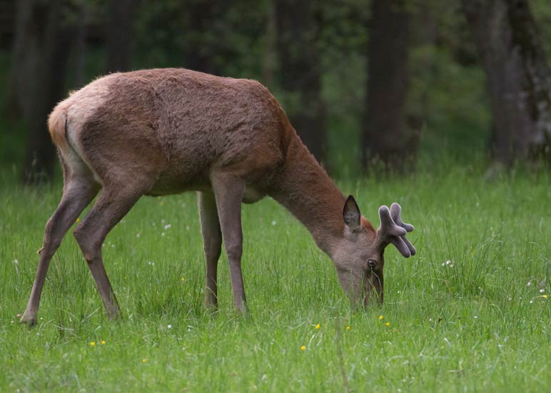 Hirsch im Rotwildgehege ... mehr über den → Glemswald an der Glemsquelle |