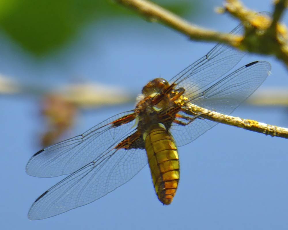 Plattbauchlibelle am Wegrand (Libellula depressa, weibl.) mehr über → Segel-Libellen im Glemstal |