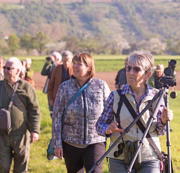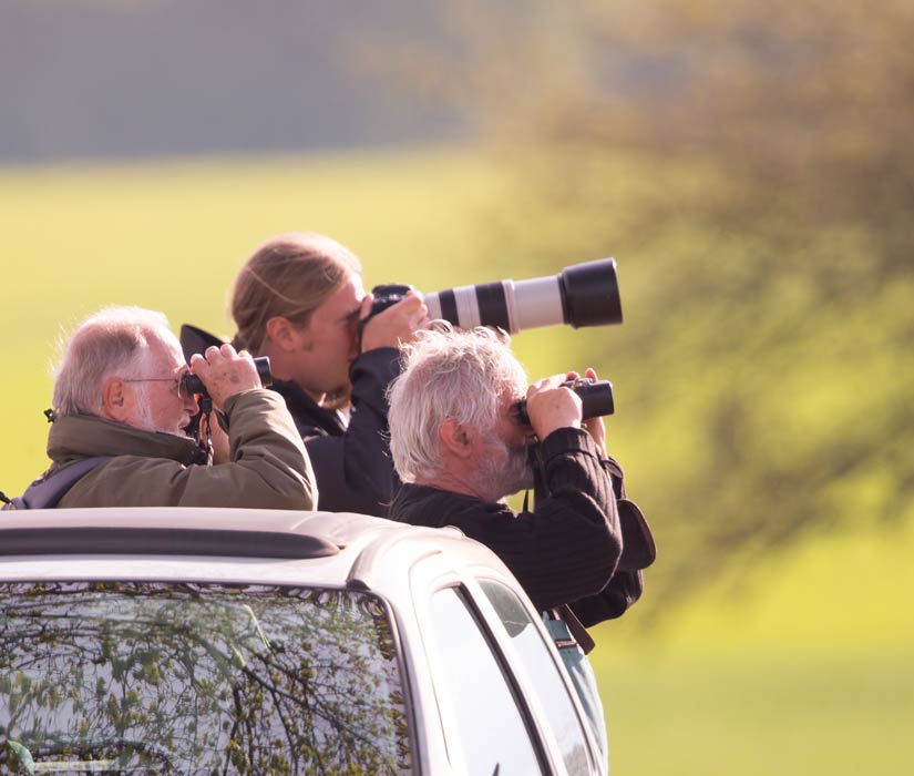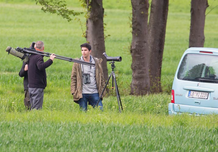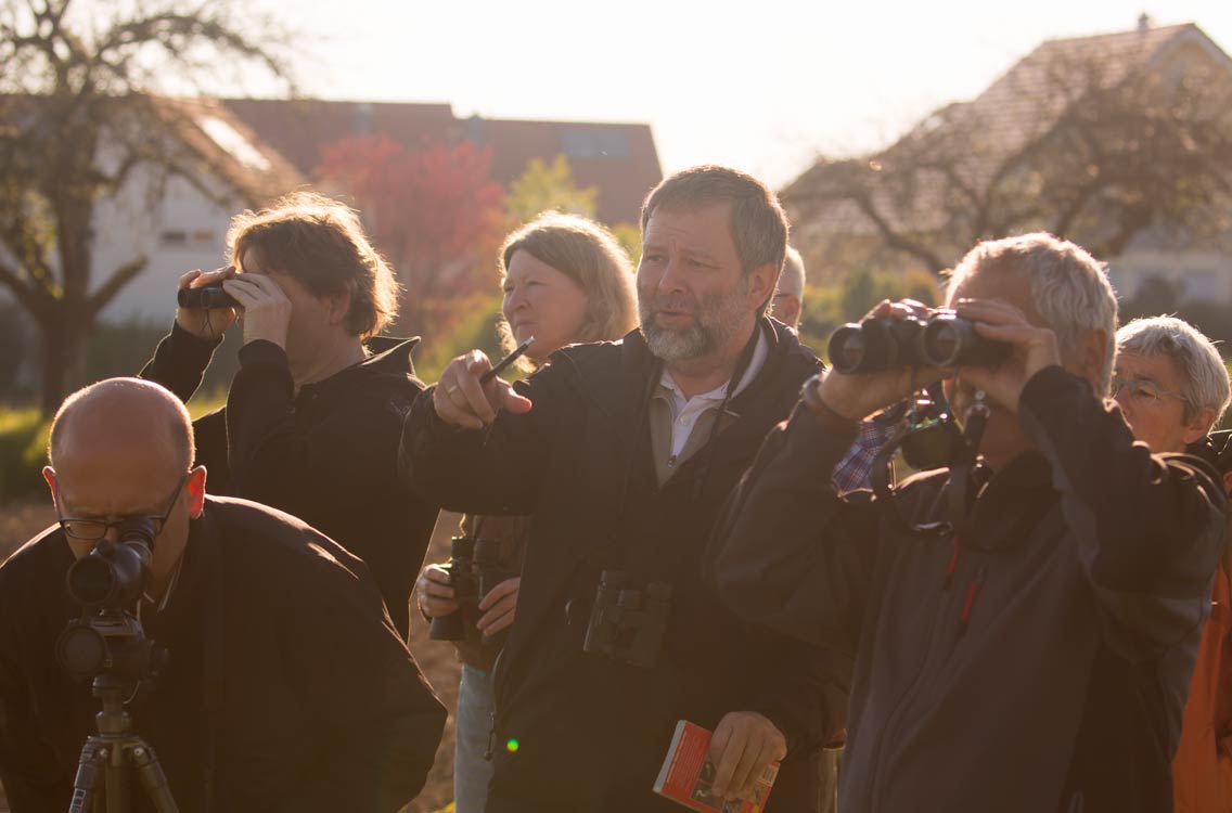 | Lokale Ornis am Riedgraben beobachten den Abflug des Sichlers |