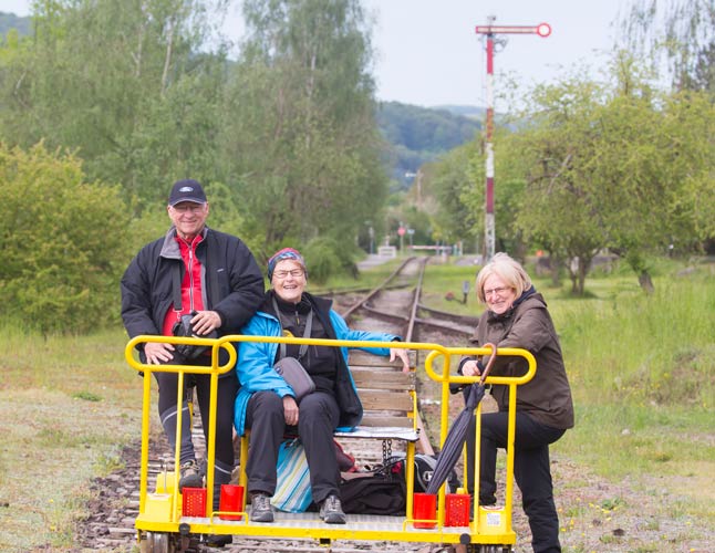 ►in Niederalben im Glantal bei einer Draisinentour mit Erna und Fritz Plachetta am 17.5.1016