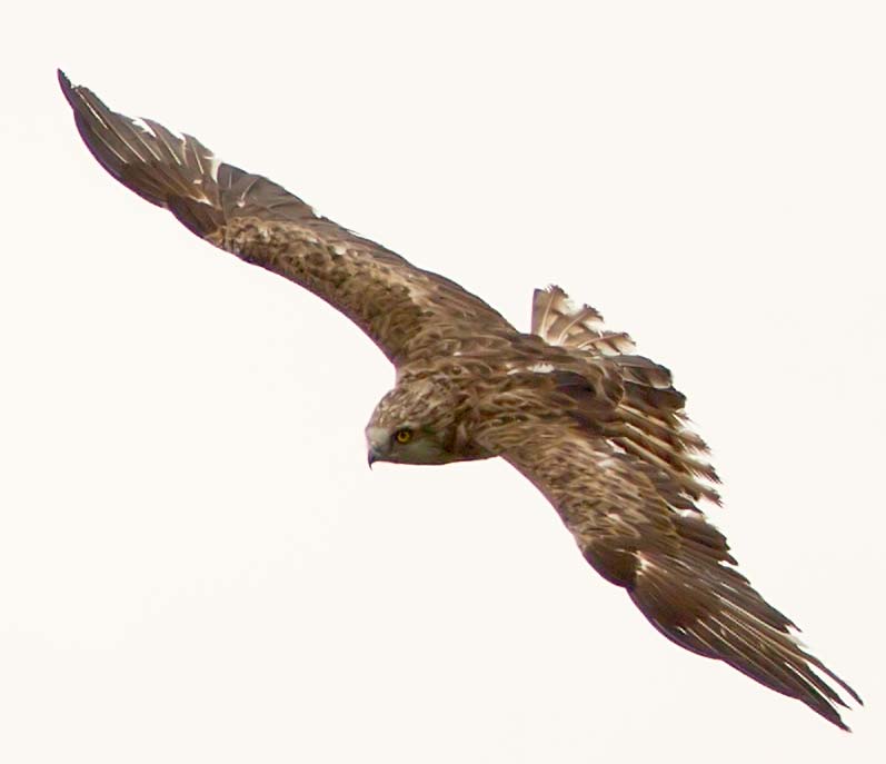 Junger Schlangenadler im Flug. Jochen Völlm schreibt mir dazu: "Federn