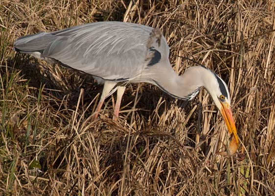 Graureiher hat einen Frosch gefangen ... mehr über die → Graureiher im Glemstal |