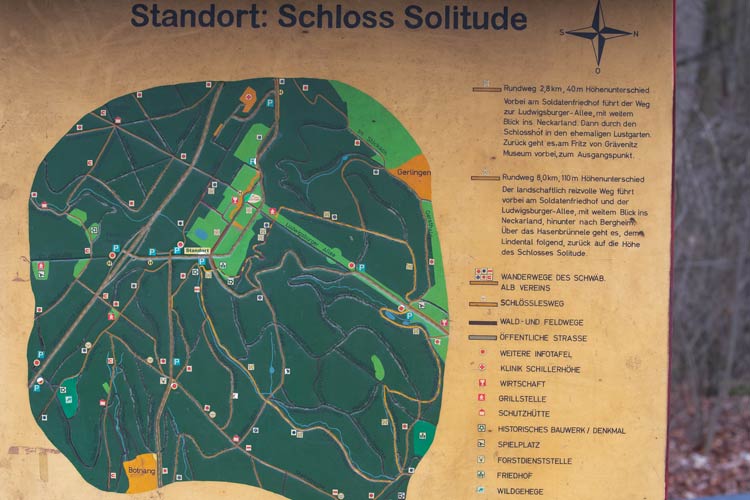 Schloss Solitude (500m ü NN) - Solitudeweiher (480 m) - Rotwildgehege -
