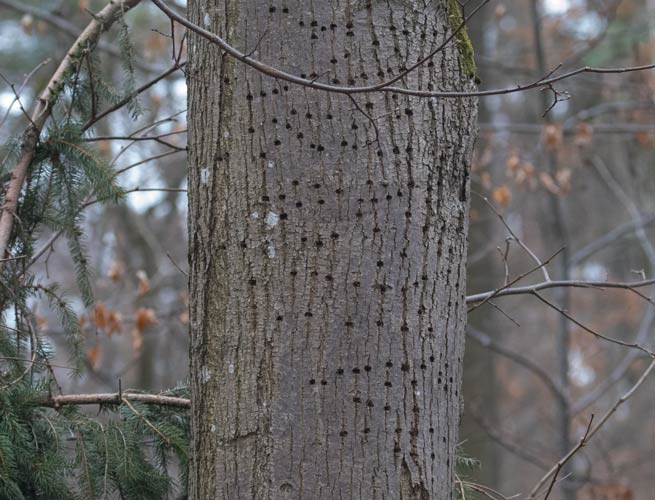 Ringelbaum mit Spechtspuren