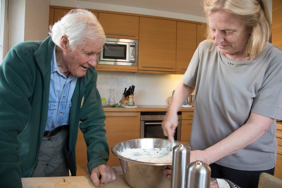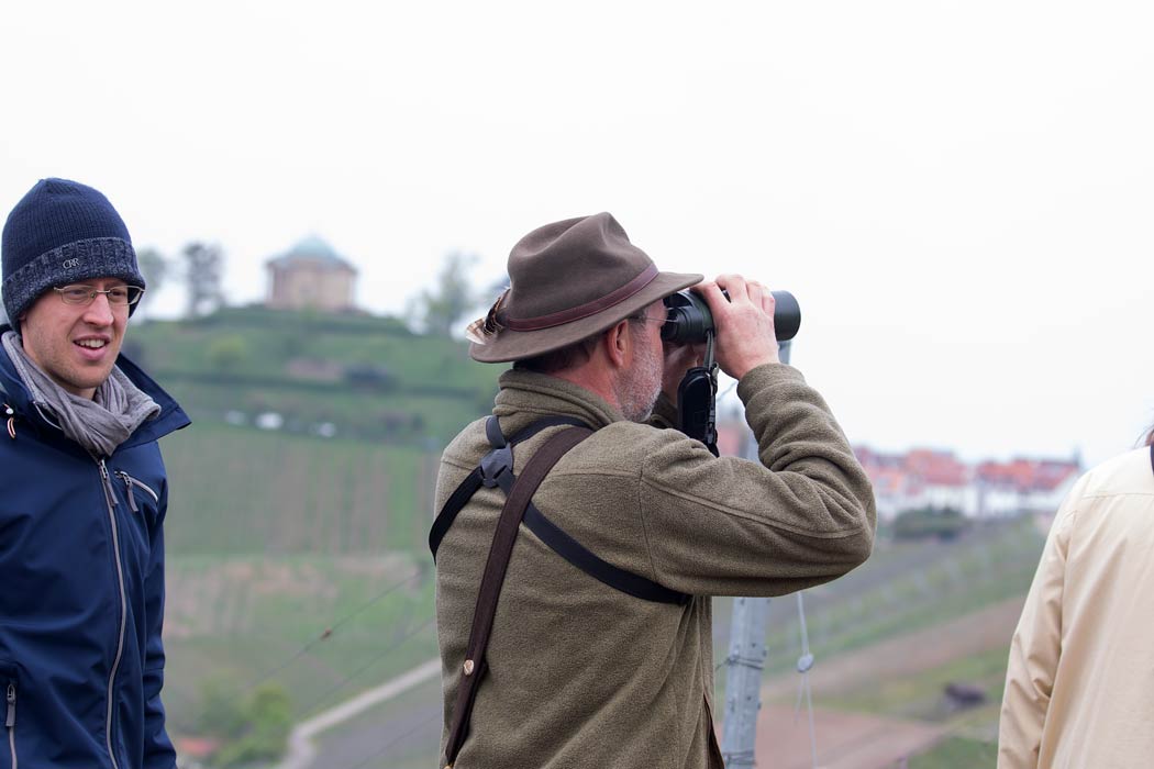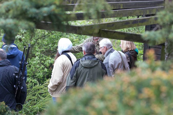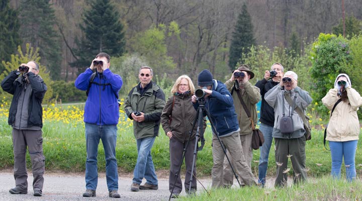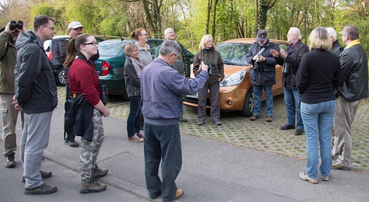 die Vogelstimmenführung mit Prof. Dr. Hartmut Kayser startet am Terrassenhaus |