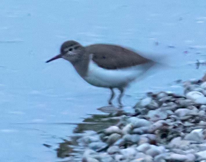 Am Abend nach unserer Vogelstimmenführung sitzt eine Wasseramsel am Schwall beim Trafoturm