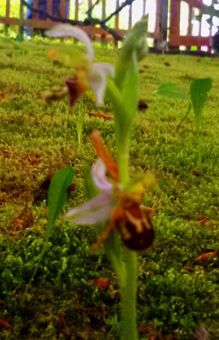 Bernd Taubitz aus Schwieberdingen schreibt mir: "tatsächlich wachsen die (Bienenragwurz-) Orchideen dieses Jahr wieder und zwar an noch mehr Stellen. Ich habe ca. 15 Tomatenstangen neben den Orchideen in den Boden gesteckt. An manchen Stellen wachsen mehrere Orchideen nebeneinander, so dass ich auf eine Gesamtzahl von ca. 25 Orchideen komme. Irgendwie haben die sich weiter vermehrt. Also wenn die Ausbildung der Orchidee vom letzten Jahr 100% entspricht dann sind die ca. 25 jetzt bei ca. 25 bis 40%, also es braucht noch eine gewisse Zeit bis sie ganz ausgebildet sind. Ich melde mich dann wieder."