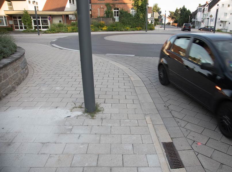 Pflastersteinen und neuartigen Spezial-Randsteinen zwei Jahre nach dem Bau.
