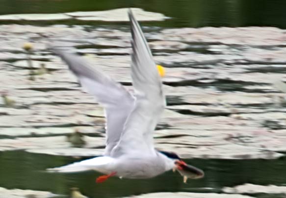 Diese Flussseeschwalbe hat einen Fisch gefangen beim Stosstauchen |